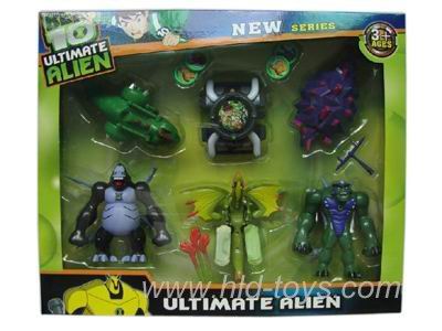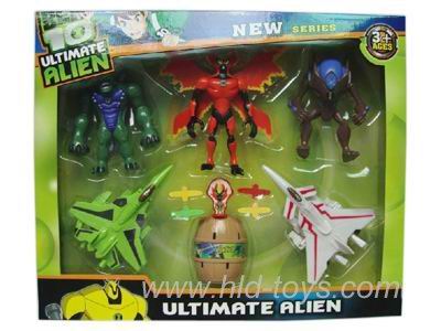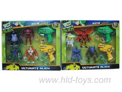 4只带灯光第四代BEN10公仔配2把飞碟枪(2款混装) |