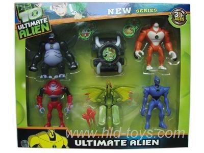 4只带灯光第四代BEN10公仔配小飞龙发射器/飞碟手表(2款混装) |